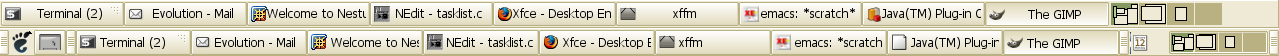 Created attachment 108 GNOME vs. Xfce taskbar Sorry, but GNOME doesn't do that either. The code base of that particular feature (the taskbar) is identical beween GNOME and Xfce, and the attached screenshot shows that the result is indeed the same...
