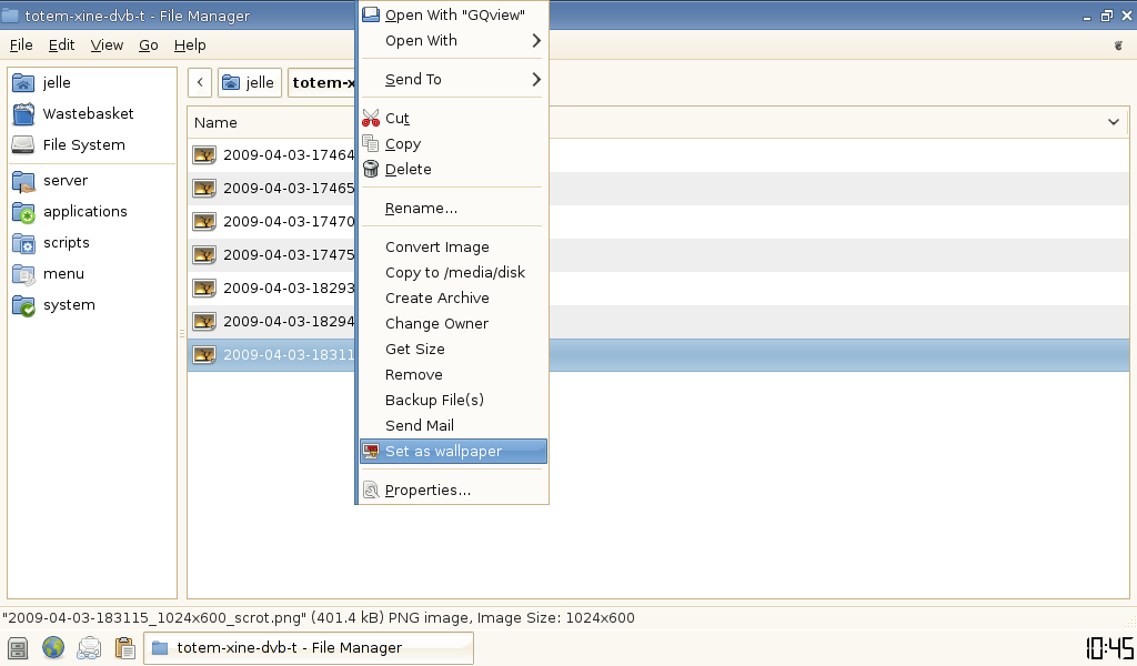 Created attachment 2279 screenshot of issue Hello everybody, I use thunar, on a system that does not use the xfce desktop and uses feh and a plaintext configuration file to manage the backgrounds. I use debian unstable for testing, and when I upgraded from thunar 0.9.0 to 1.0.0, there is automatically added a new item in the right content menu... (see screenshot) the addition of this item is unwanted. Would it be possible to not add this item to thunar. I like thunar to be a desktop independent GTK+ file browser and not connected to a specif desktop environment. $ dpkg -l | grep thunar ii libthunar-vfs-1-2 1.0.0-2 VFS abstraction used in thunar ii pct-thunar-scripts 0.1.0-1 collection of thunar custom action scripts ii pct-thunar-scripts-setup 0.0.20081208-1 little program to manage your thunar custom action scripts ii thunar 1.0.0-2 File Manager for Xfce ii thunar-data 1.0.0-2 Provides thunar documentation, icons and translations Thanks in advance for removing thunar-wallpaper-plugin and making it a separated plugin and separated installation package.