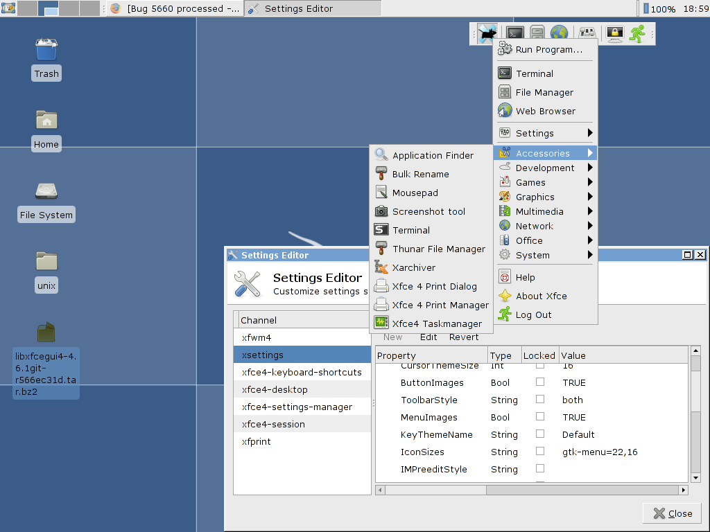 I only checked bugzilla activity. I'm using only ebuilds or I can build from sources if I'm sent an URL. Could you, please, direct me to the correct repository/tar.bz2 or patchset? I'm an ordinary (but keen on XFCE) user. I'm good in striking on bugs, but I'm a rather poor programmer/developer. Thanks in advance.