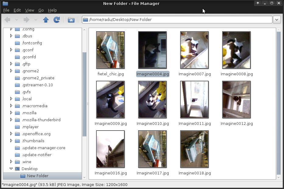I have 2 pictures, Imagine0017.jpg and Imagine0018.jpg, made with a Nokia phone. I concatenated them and I saved the result as fietel_chic.jpg, with a software (PhotoFiltre under WINE) that asked me whether to preserve the EXIF info or not. I said yes ==> fietel_chic.jpg has now the same EXIF info as Imagine0017.jpg (which is correct) ==> fietel_chic.jpg has now THE SAME THUMBNAIL AS Imagine0017.jpg (which is a bug) Xubuntu 9.10 beta, Thunar 1.0.1