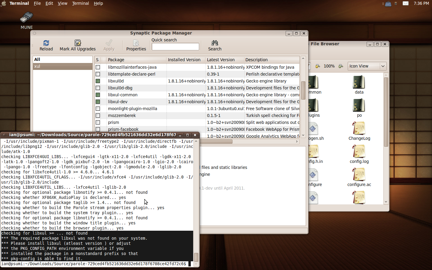 Created attachment 2677 libxul installation See picture attachment. Also, installing libxul-dev removes firefox.