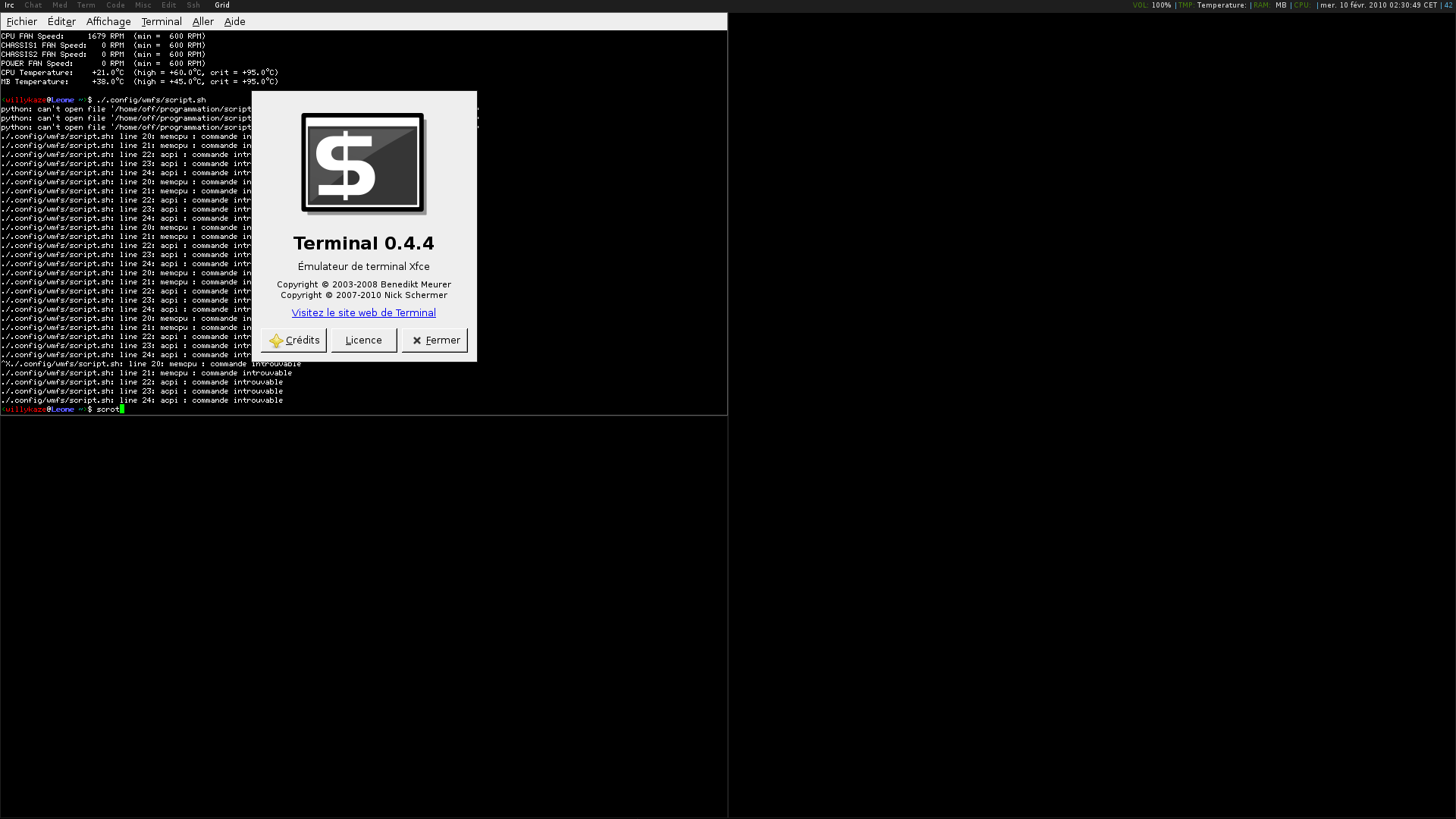 (In reply to comment #1) > Tried to run wmfs, but it wouldn't start, so I need some more information. Do > you have the same issue with the vte application? I use terminal app with Openbox and I never got this bug until I switch to wmfs. I'm sorry, what is vte application?