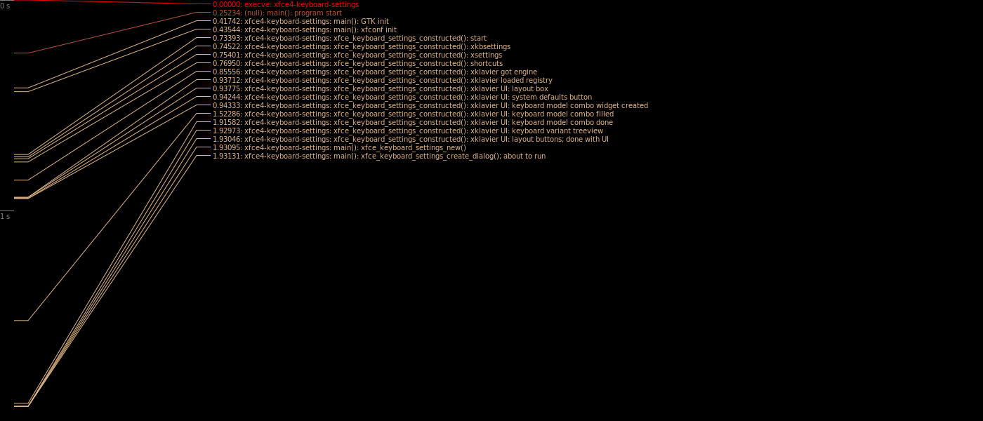 Created attachment 3088 performance trace with the patch applied With the patch, the trace now looks like this, and xfce4-keyboard-settings now starts up in just under a second. I tested that the layout combo box still works fine.