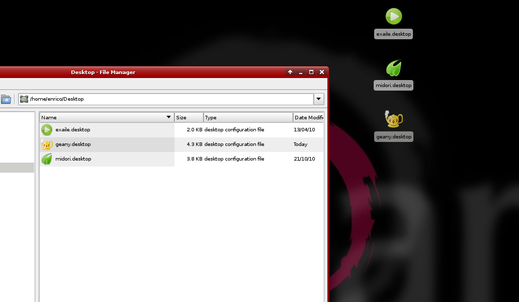 Created attachment 3197 wrong icon names When opening ~/Desktop with Thunar, it displays the files in it, obviously. Though, I think it should display .desktop files there differently than normal files. It should use the Name key from the .desktop files itself for display. More important, on the desktop itself, the Name really should be used and not the real filename. See screenshot (I'm not sure whether this is a separate bug in xfdesktop or whether it is also Thnar). This happens on GIT master from Monday, November 15 2010.