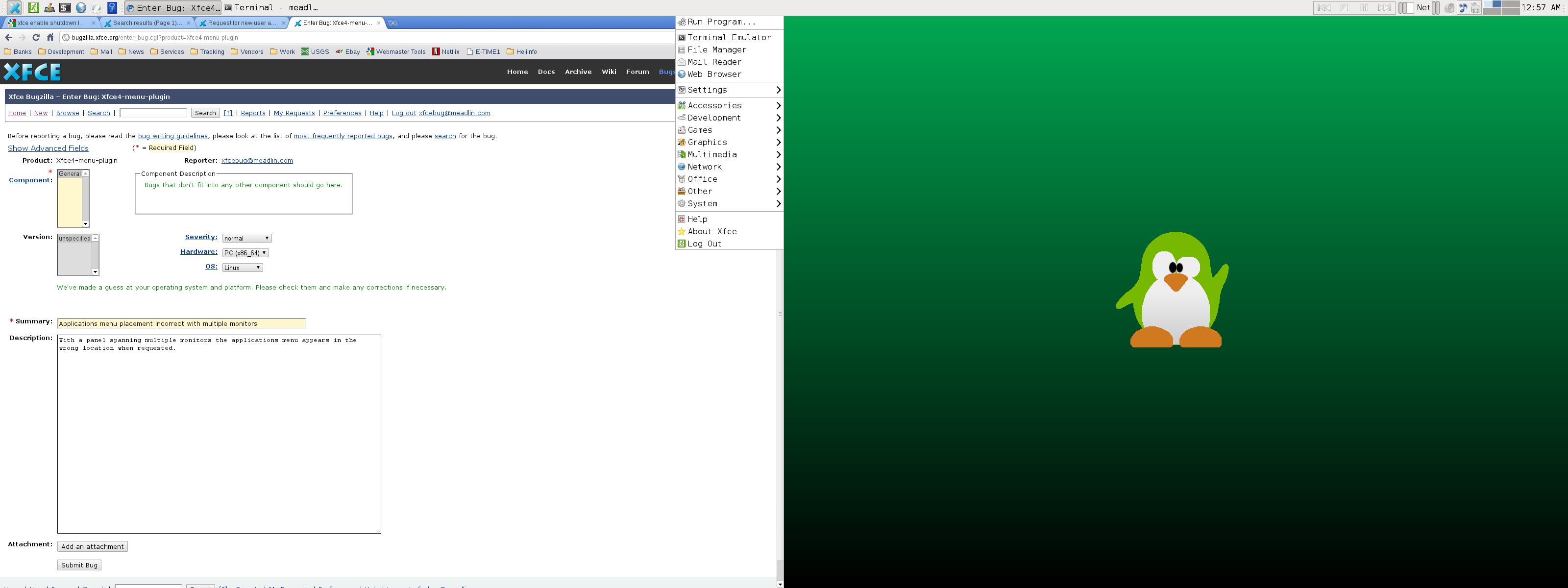 Created attachment 3370 Image showing Application Menu on right side of left monitor. With a panel spanning multiple monitors the applications menu appears in the wrong location when requested.