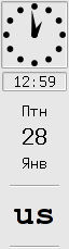 Created attachment 3466 My vertical panel date view Currently I'm using XFce-4.8 on Gentoo Linux (x86). I'm using vertical information panel (the date-tome section is on the attached image). Analog clock are the standard clock plugin. The rest ones (digital clock, weekday abbr. (text), monthday (numeric) and month abbr. (text)) are displayed by datetime plugin. For my task I had to start 4 copies of datetime plugin. I would like to be able to get the similiar result starting the only copy of datetime plugin.
