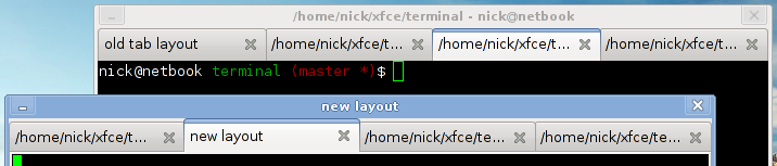 Created attachment 3668 Tabs look different in terminal compared to other tabs such as midori and appearance settings dialog. Tabs in xfce terminal look different to other tabs in xfce. In my current theme, the inactive tabs are lower to the active tab, but in terminal, they are all the same size.