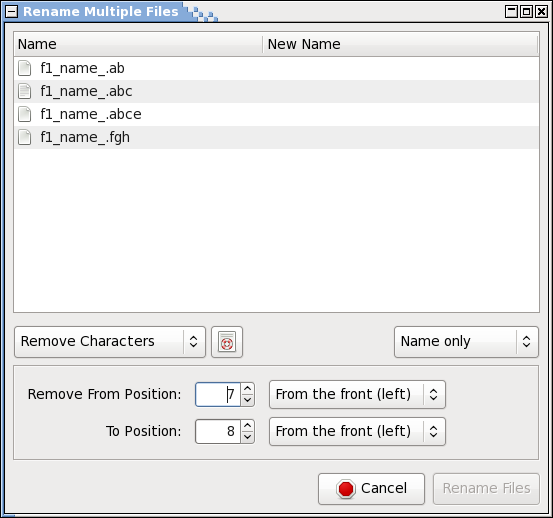 Created attachment 3681 It's imposible to remove the last character from the left It's impossible to remove the last character from the file name while "Name only" is shown. (See attached pictures)
