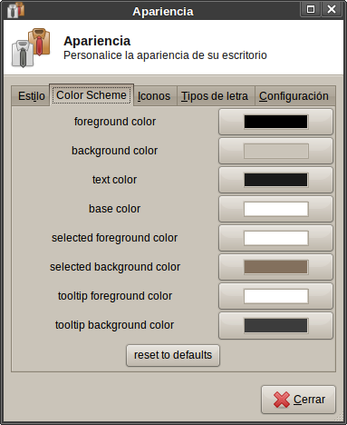 Created attachment 3717 patch and screenshot of the dialog It would be nice to have a color scheme tab in xfce4-appearance-settings, like in gnome (2). I've implemented this using the package xfce4-settings-4.8.0 as base. It has almost all the functions, but has some minor problems: - lacks translations - doesn't read the gtk_color_scheme string from the current selected theme - the "reset to default" button doesn't work like expected (it deletes the color_scheme string, but doesn't apply changes to the widgets untill relogin). - text labels of the color are not aligned in a good way (see attached screenshot). - a color scheme change doesn't affect xfwm4 (until relogin or change of xfwm4 theme). P.S.: to store the color_scheme string in xml i had to use g_strcompress() in any G_TYPE_STRING property in registry.c, i don't know if this could impact in other properties.