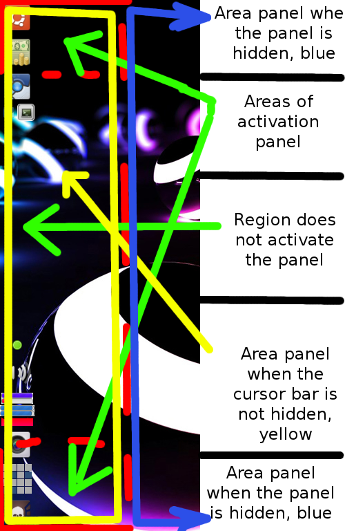 Created attachment 3821 screenshot for xfce4-panel well make the top and bottom of the panel and activate it there. the middle area does not activate the panel and the panel is hidden when the cursor moves by 50 pixels Thanks you video my panel xfce4-panel http://www.youtube.com/watch?v=vuID8xsoj_o and screenshot
