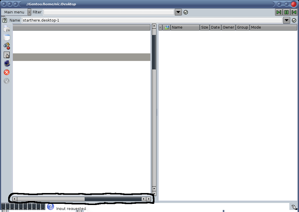 When I press the up or down key while renaming a file, the display get completly corrupted, an it didn't show any file or icon anymore in the file view. Reproducible: Always Steps to Reproduce: 1. Open xffm 2. rename a file by pressing ctrl-r 3. while renaming the file, press up or down key Actual Results: display corrupted Expected Results: nothing must happen. gtk version: 2.6.1 system : gentoo linux 2004.3