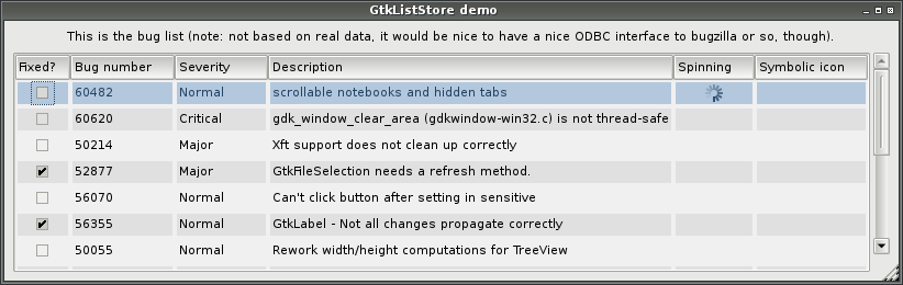 Created attachment 4224 gtk3-demo -> Tree View -> List Store This is the list store demo using the Xfce-winter theme. gtk3-demo should be provided with Gtk3. Could you check if you have alternating colors there? If so could you give me a name of an applications which doesn't have alternating colors?