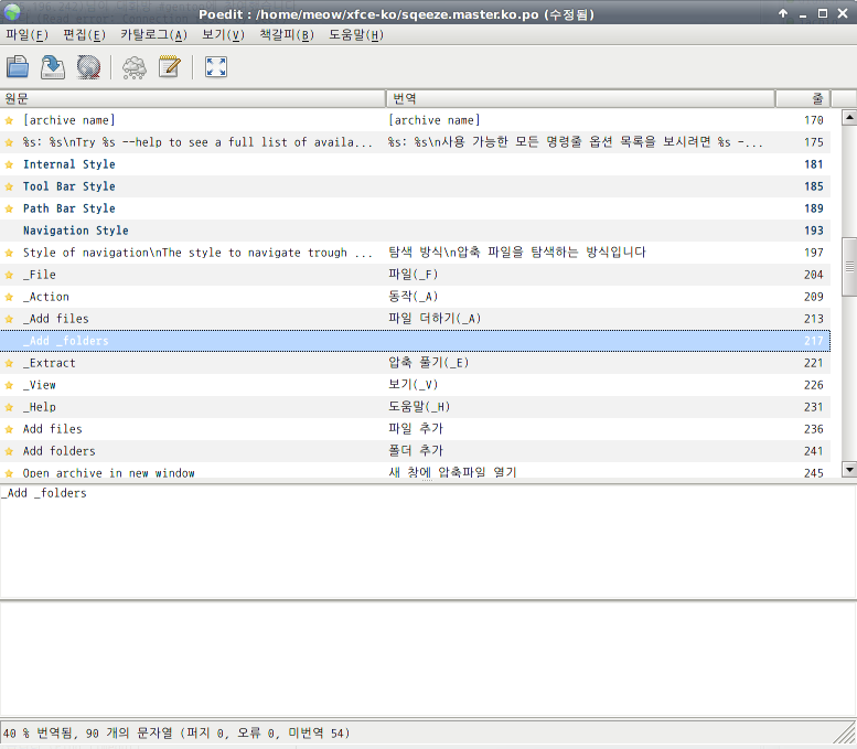 Created attachment 4240 Two or more mnemonics are in one menuitem. During translating Sqeeze's UI string to Korean, I found that "_Add _folders", which is in src/main_window.c:339 has two or more mnemonics. so I stopped my working for this application. I think that "Add _forders" is right, because "_Add files" is already uses '_A'. is there an another idea? Thanks :)