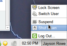 The action buttons for "Suspend" and "Standby" don't have icons.