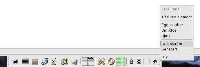 Danish spelling error. right click on the grabber ( those dots in both ends of the panel) then the lock screen function is labeled "L