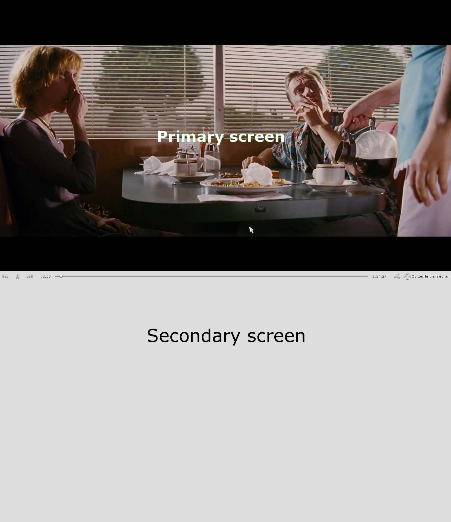 Created attachment 4615 Bug vertical multiscreen setup I'm using a vertical multiscreen setup like : | PRIMARY MONITOR | ------------------- |SECONDARY MONITOR| When you * play a movie in Parole, * go fullscreen, * and move your mouse The control bar overlaps the secondary monitor instead of being contained in the primary one (see screenshot). This occurs in Parole 0.3.0.3 (Git)