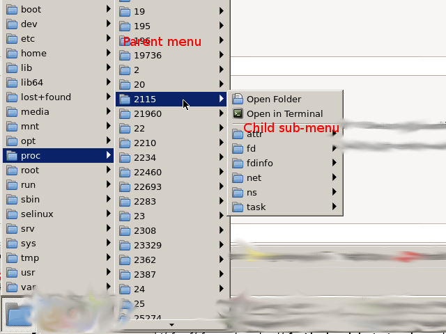 Created attachment 4793 Parent menu and sub-menu When a directory menu is opened and is too long to fit the screen then the scrolling option is available. Scrolling with the mouse wheel works until a child sub-menu is opened. After that it does not work until the cursor is moved to point to a different parent menu item (so that the child sub-menu is closed)