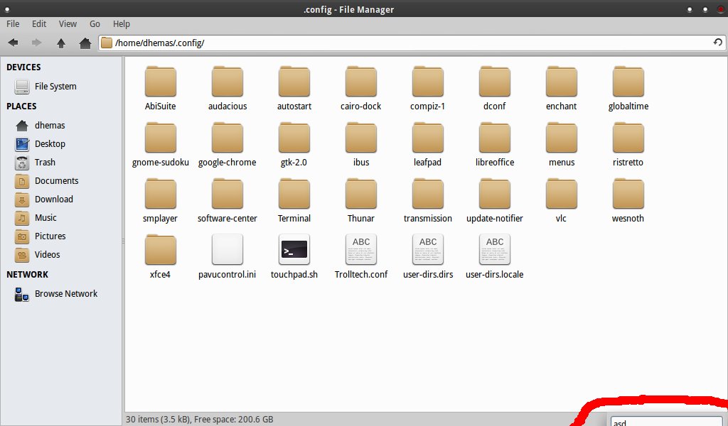 Created attachment 4984 Cropped box (rounded in red) I've update my thunar from 1.4 to 1.6.1 and this thing happen.. when I use my keyboard to search a file/folder in thunar, usually there's a box on bottom right corner that contains letter that I've type.. This box is now cropped a half when I maximized the thunar window. It'll become more worst if I deactivated the status bar, the box won't be visible anymore if I maximize thunar's window.. - I've upload the screenshot in the attachment -